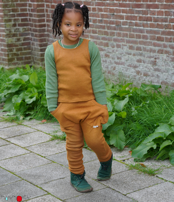 ManyMonths Spodnie Kangaroo Baggy z Kieszeniami z wełny merynosów Dark Cerise