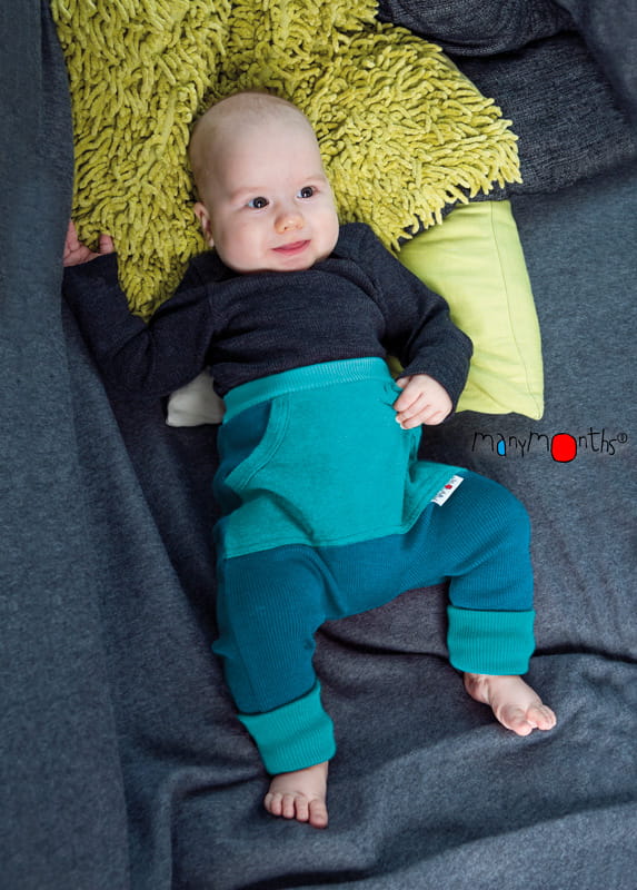 ManyMonths Spodnie Kangaroo Baggy z Kieszeniami z wełny merynosów Nutty Granola