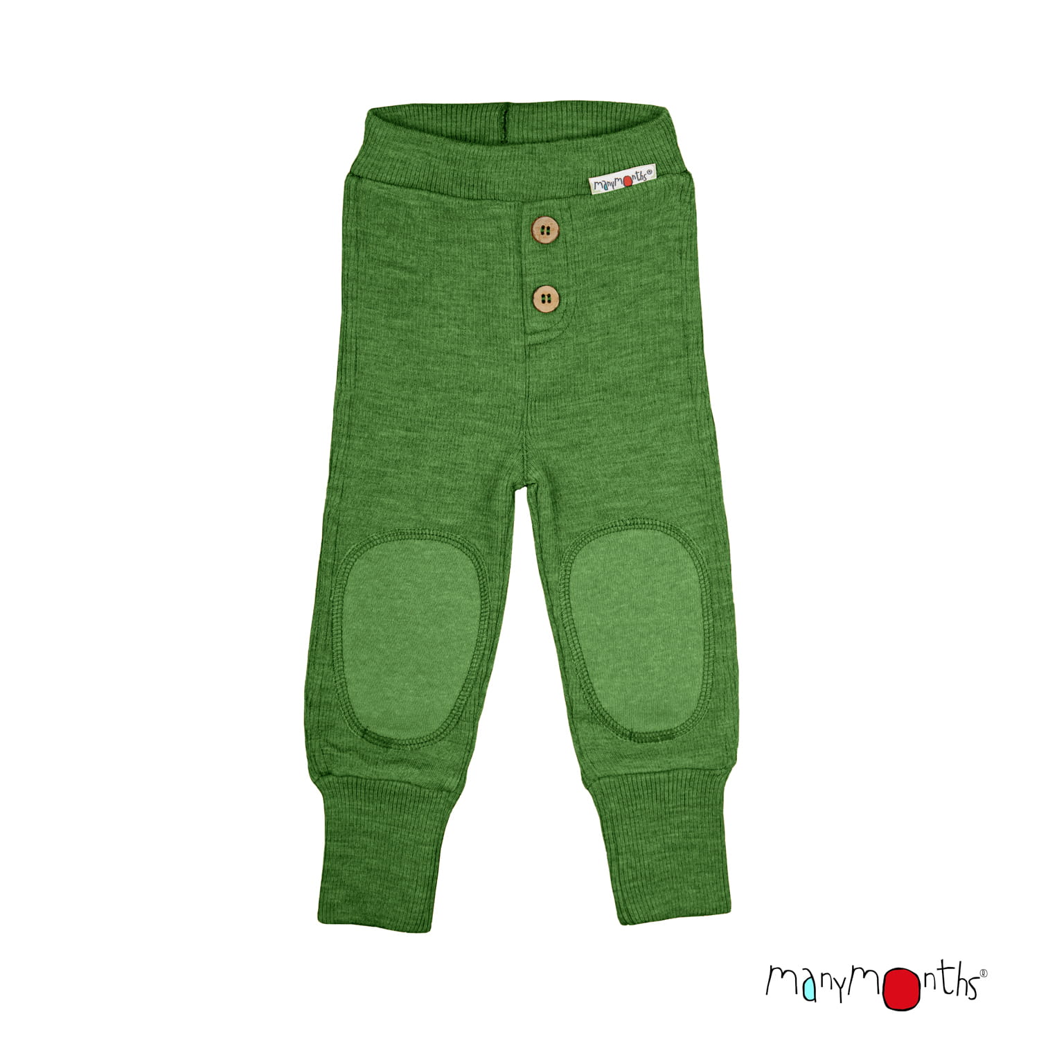 ManyMonths Spodnie z wełny merynosów Baby Joggers z Łatami na Kolanach Forest Floor Green